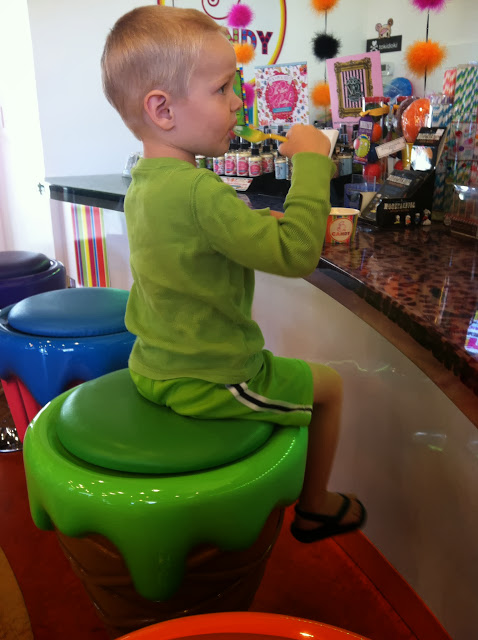 Dalton turned 4 this week! Here we are making a last minute trip to the candy store - with a scoop of peppermint ice cream for the almost-birthday boy. On a green stool, of course.
